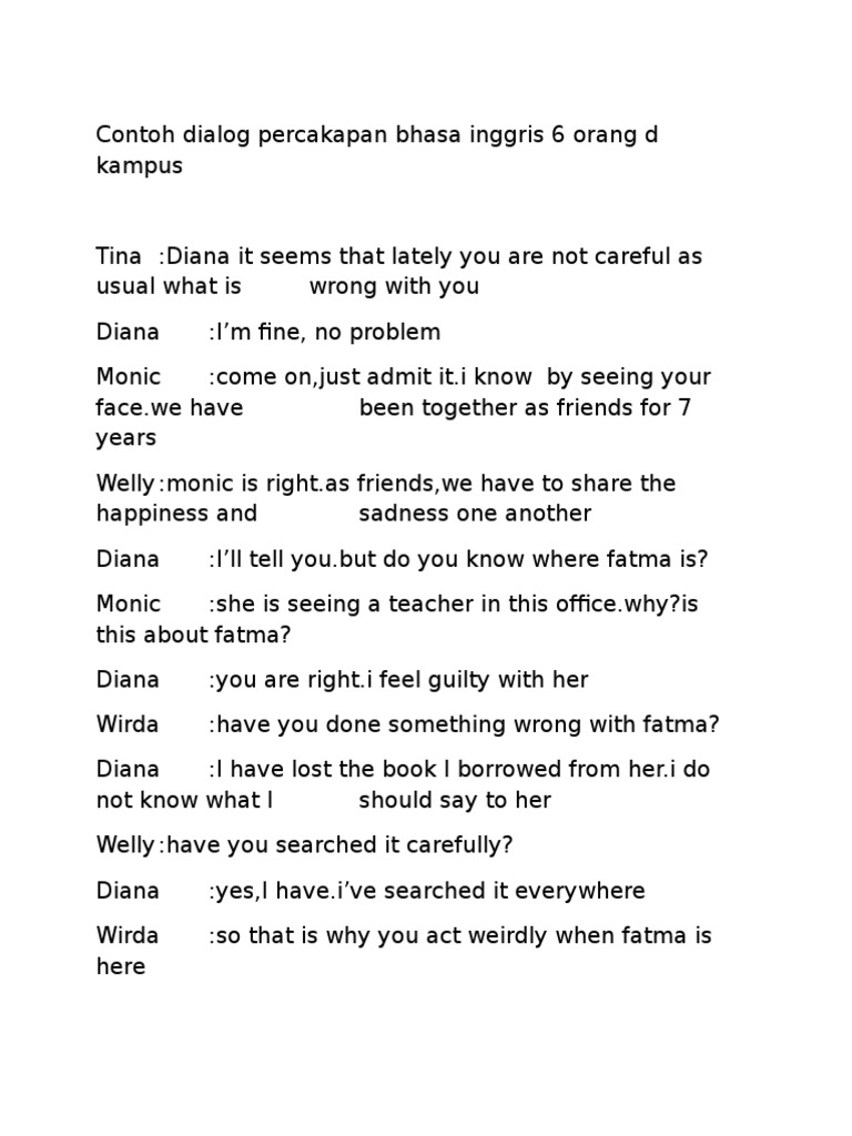Contoh Dialog Percakapan Bhasa Inggris 6 Orang D Kampus Docx